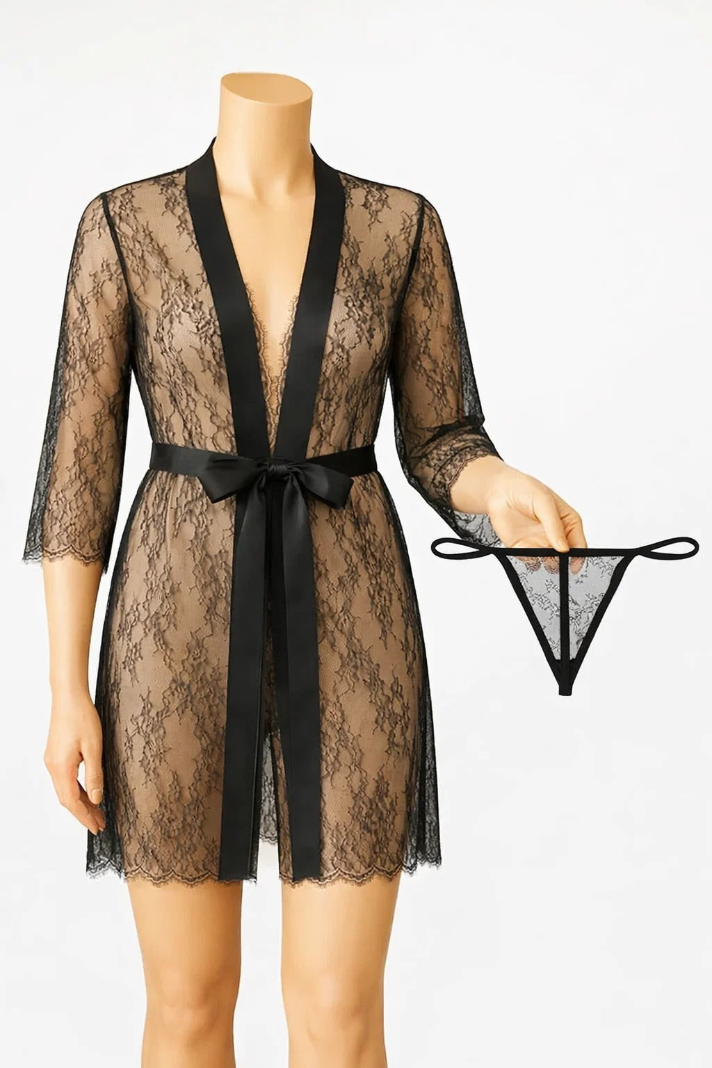 Elegant and comfortable black lace nighty set with matching G-string. Made from soft, breathable lace, perfect for daily wear or special nights.