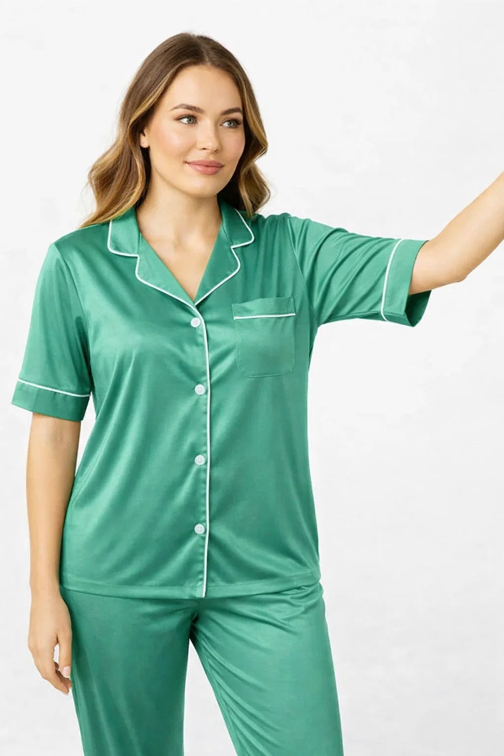Silk Shirt Pajama Nighty Set Free Size – Easily fits waist sizes 32 to 40